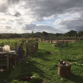 Ich habe einen grossen Garten auf guten 4.000qm, meine GRÜNE INSEL, wie ich sie gerne nenne. Mit Wiese, Obstbäumen, Tipi, Lagerfeuerstelle, Reitzirkel, Hühnerstall und Schafauslauf, mit kleinen wilden Ecken, mit einer Knickhütte an der weiter gebaut werden darf, dort ist ein "Pfefferminzwald" zum Tee sammeln und schnuppern, große Steine zum Klettern und ausruhen, einen Erdhügel zum Buddeln, eine Hängematte zum schlafen, oder für wilde Fahrten und was das Kinderherz noch so erfreut. Der Gemüsegarten liegt direkt neben an und der Blick geht weit herüber zum Dorf und auf den Wald. Gänse und Schwäne, Kraniche und manchmal sogar ein Adler kreuzen den Himmel über der Wiese. Wir legen uns auf den Rücken ins hohe Gras und beobachten sie: Wie ist ihre Farbe, wie ihr Ruf und ihre Größe? Schlagen sie oft mit den Flügeln oder ziehen sie in der Sommerluft still ihre Kreise?